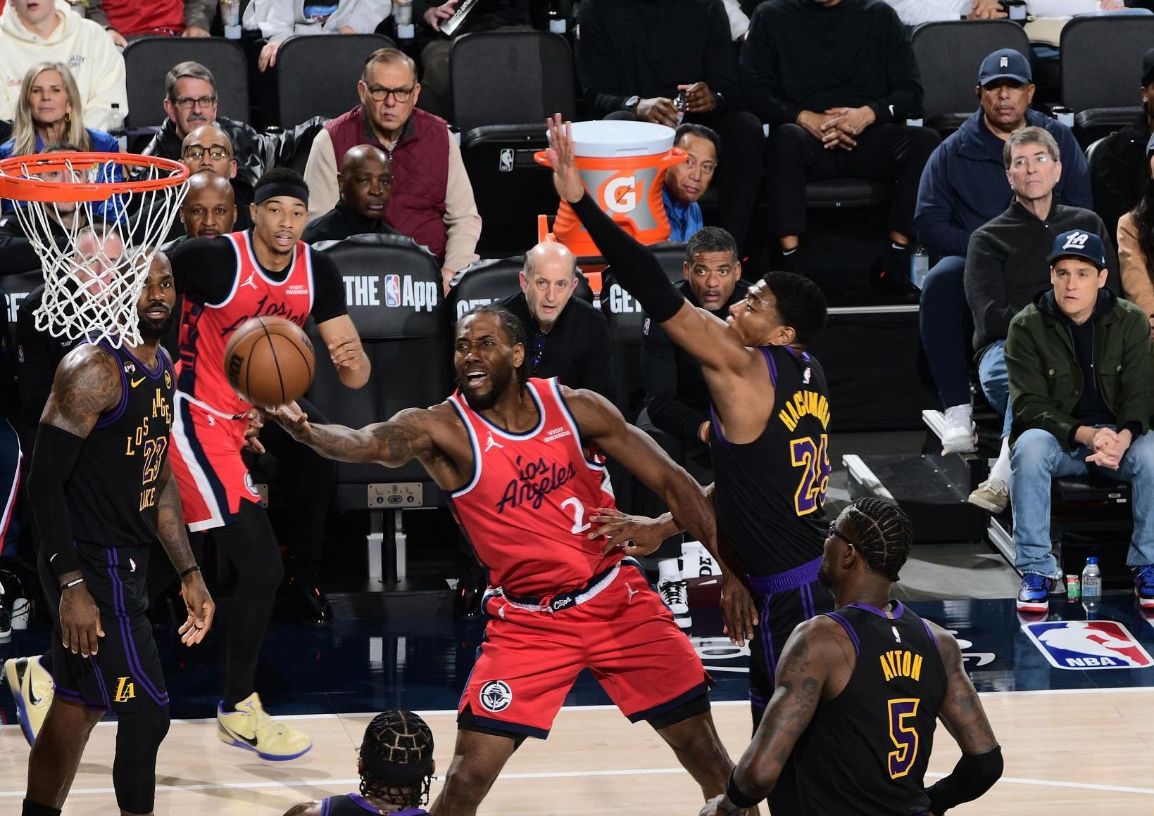 因伤缺席了3场比赛的莱昂纳德赶在洛城德比回归,他出战26分钟,得到24分5篮板4助攻1抢断,和哈登一起率领快船以112比104击败湖人。