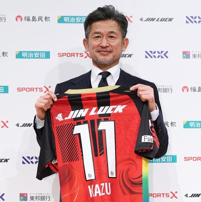 01月09日讯 58岁日本前国脚前锋三浦知良在东京出席J3福岛联队的记者会,他以租借形式从J2横滨FC转会而来,合同期至2026年6月30日,将身披标志性的11号球衣。
